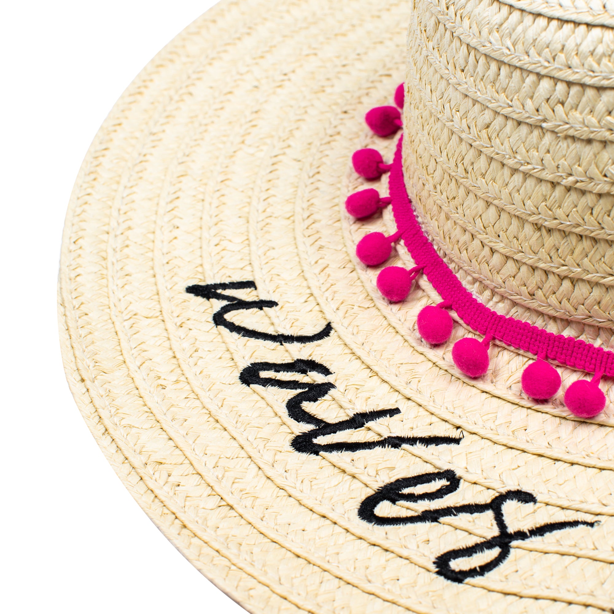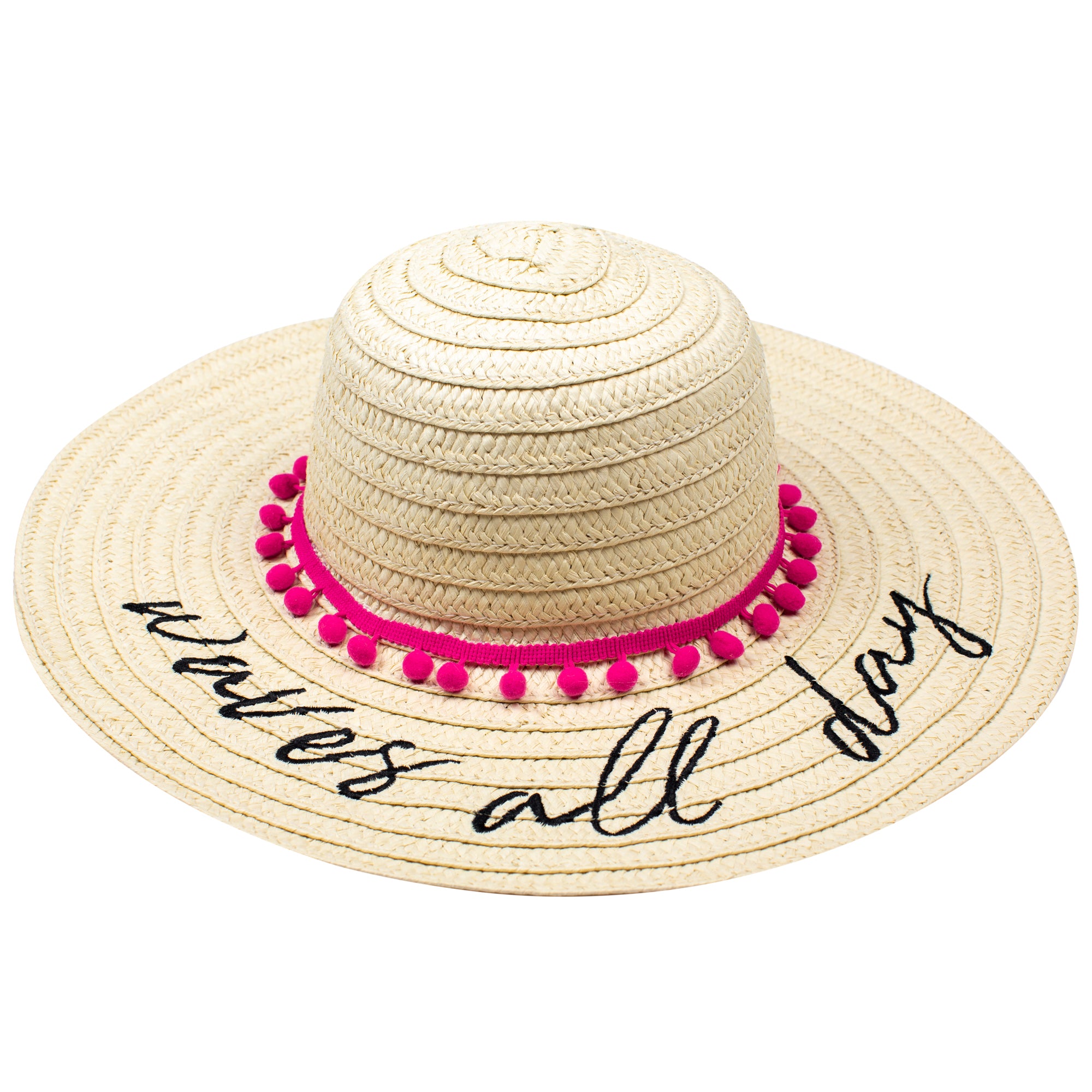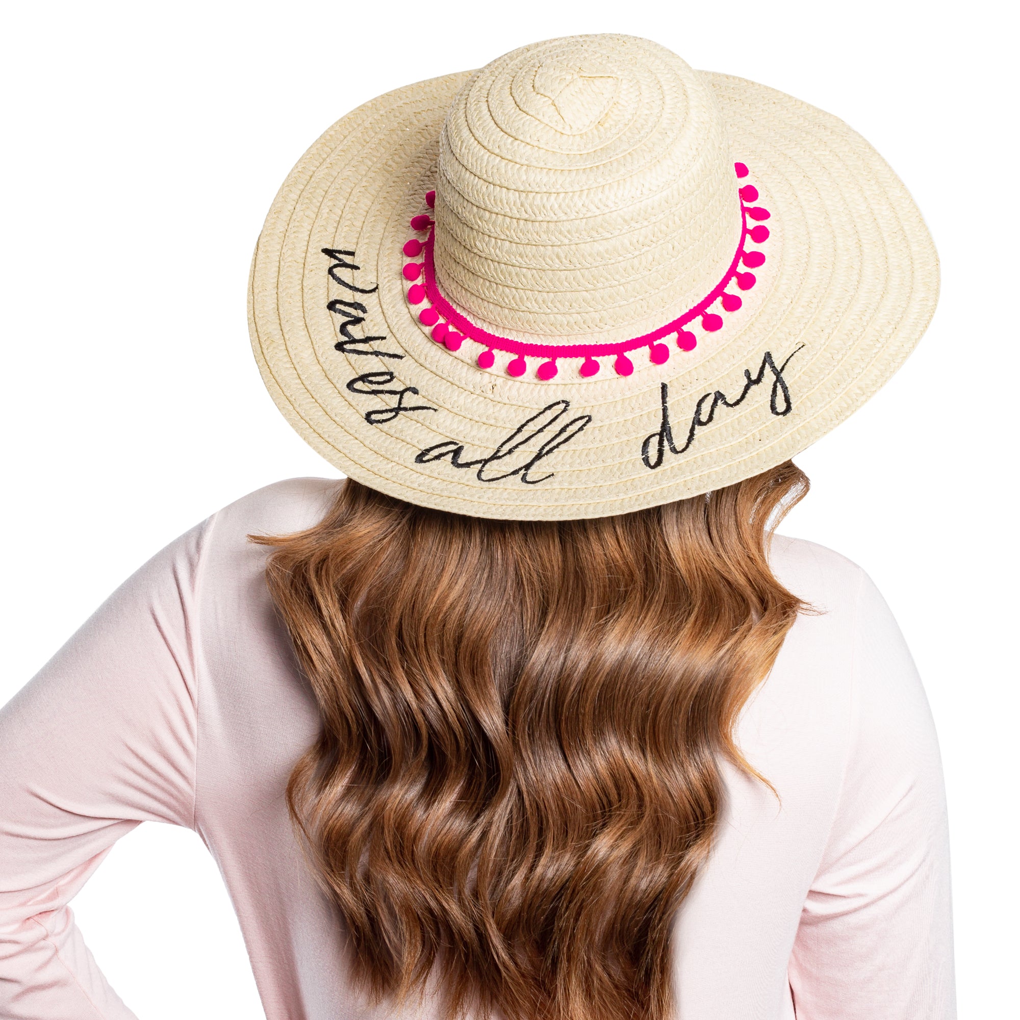 Nothing says summer like the perfect beach waves…or the perfect beach hat! Stay cool with this chic, wide-brim hat featuring embroidered lettering—it’s the ultimate summer vacay accessory!
