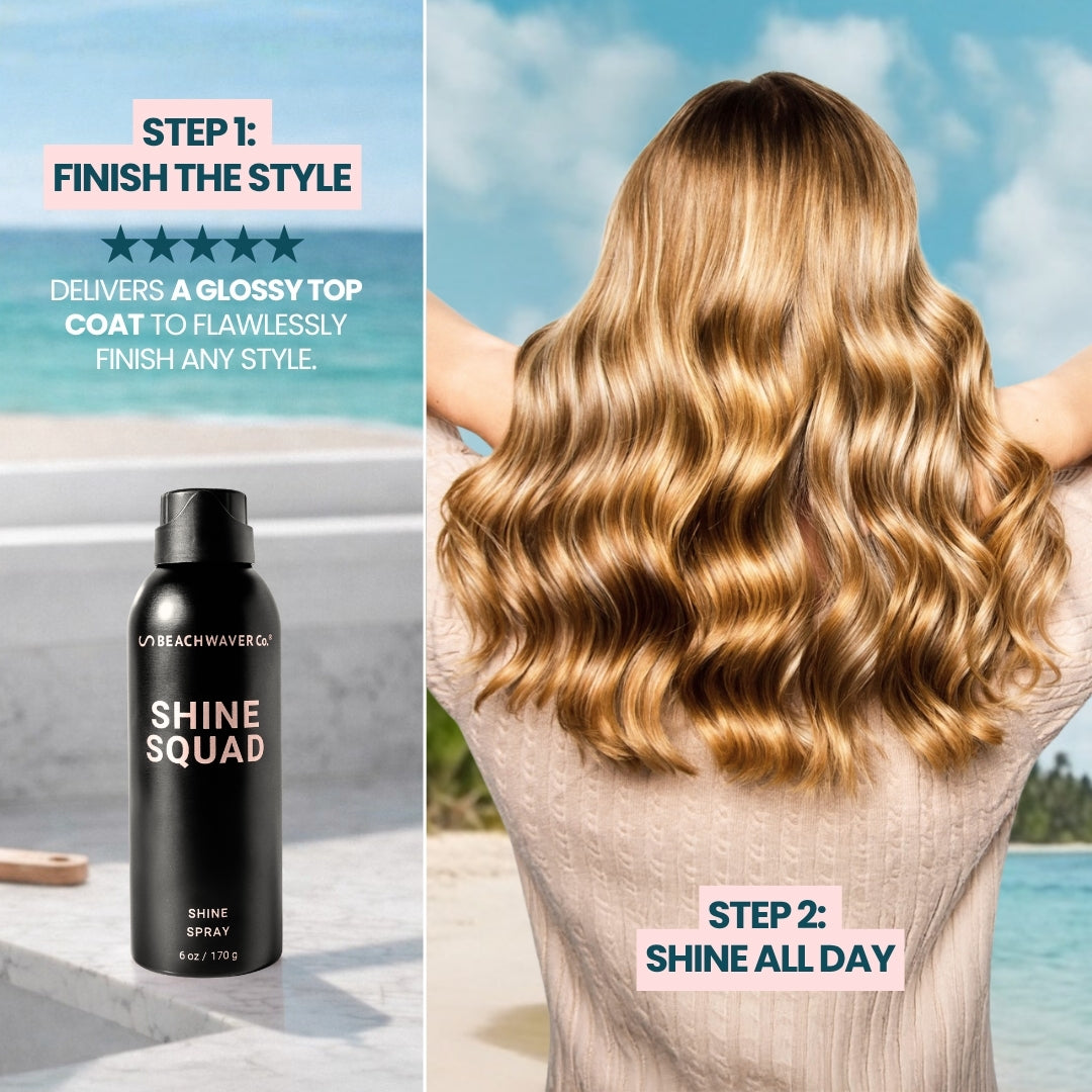 Shine Squad is great for all hair types! Our Shine Spray, infused with HIx Bond Multipliers, adds strength to your strands while providing gorgeous shine. The spray allows the shine enhancing formula to evenly coat the hair for a lightweight, touchable, shiny look.